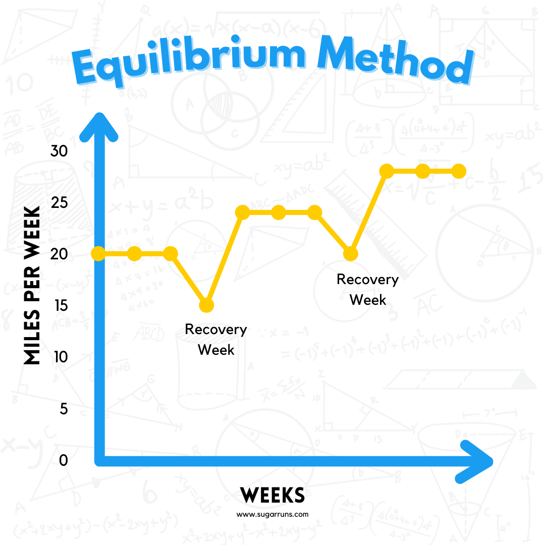The equilibrium method was developed by Jack Daniels. This method focuses on increasing mileage by the number of runs you do each week. If you run 5 times per week, for example, you would increase your weekly mileage by 5. You would never increase more than 10 miles.